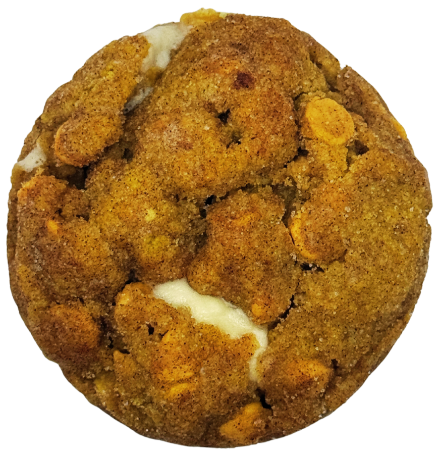 a cream cheese stuffed pumpkin spice and everything nice dough with butterscotch and white chocolate